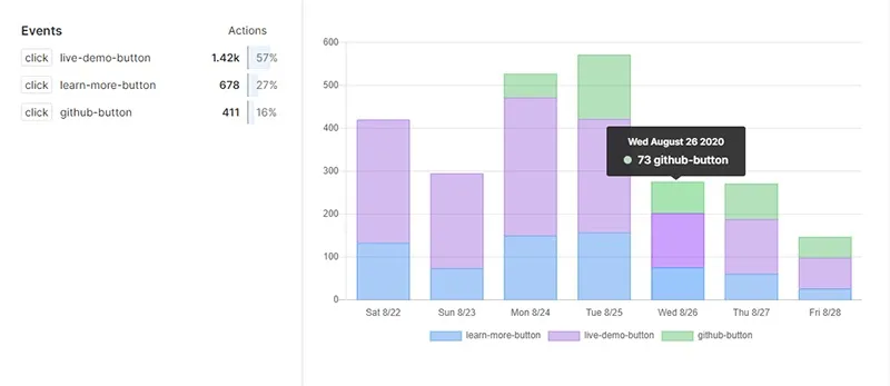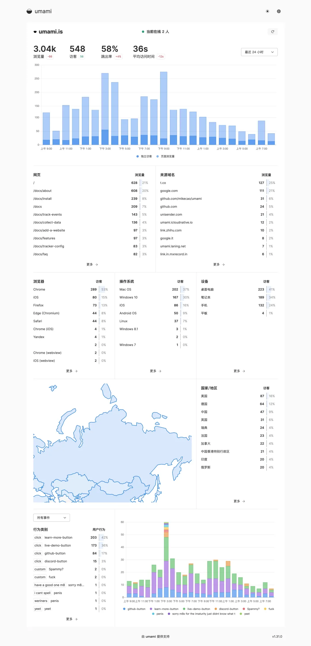>简介: Umami 是一个简单、易于使用、自我托管的网络分析解决方案,目标是为您提供一个更友好的、注重隐私的谷歌分析的替代品,以及一个免费的、开源的付费解决方案的替代品。Umami 只收集你关心的指标,所有东西都放在一个页面上。 ## 前言 `Umami` 是一个简单、易于使用、自我托管的网络分析解决方案,目标是为您提供一个更友好的、注重隐私的谷歌分析的替代品,以及一个免费的、开源的付费解决方案的替代品。Umami 只收集你关心的指标,所有东西都放在一个页面上。 ## 特性 **简单分析** `Umami` 只测量你关心的重要指标:网页浏览量、使用的设备以及访问者的来源。这些数据都在一个易于浏览的页面上展示。 **不限网站数量** `Umami` 通过一次安装就可以跟踪无限数量的网站,甚至还可以跟踪子域名和单个的 URL。 **绕过广告拦截器** `Umami` 由你在自己进行托管部署,所以你可以有效地避免 Google Analytics 不同的广告拦截器。 **轻量级** 追踪脚本很小(只有 2KB),而且支持 IE 等旧版浏览器。 **多账户** `Umami` 可用于为朋友或客户托管数据,只需创建一个单独的账号,他们就可以开始在自己的仪表板上跟踪自己的网站。 **共享数据** 如果你想公开分享你的统计数据,那么你可以使用一个唯一生成的 URL 进行共享。 **移动端友好** `Umami` 界面已针对移动设备进行了优化,因此你可以从任何地方查看你的统计数据。 **数据所有权** 由于 `Umami` 是自托管的,因此你拥有所有数据。无需将你的数据交给第三方进行利用。 **注重隐私** `Umami` 不收集任何个人身份信息,并对收集的所有数据进行匿名处理。 **开源** `Umami` 是开源的,并采用 MIT 的开源协议。 ## 一、安装 ### 1、从源码构建 如果你想要从源码进行构建安装,需要满足以下条件: Node.js 版本在 12 及以上 一个 MySQL 或 Postgresql 数据库 然后直接获取源码安装依赖包: ```markdown git clone https://github.com/mikecao/umami.git cd umami npm install ``` 接下来创建数据库表结构。Umami 支持 MySQL 和 Postgresql,首先需要为你的 Umami 安装创建一个数据库,并使用包含的脚本安装表。 对 MySQL: ```markdown mysql -u username -p databasename < sql/schema.mysql.sql ``` 对 Postgresql: ```markdown psql -h hostname -U username -d databasename -f sql/schema.postgresql.sql ``` 这也将创建一个用户名为 `admin`、密码为 `umami` 的登录账户。 接着使用以下内容创建一个 `.env` 文件: ```markdown DATABASE_URL=连接地址 HASH_SALT=任意随机字符串 ``` 连接 url 格式如下: ```markdown postgresql://username:mypassword@localhost:5432/mydb mysql://username:mypassword@localhost:3306/mydb ``` 其中 `HASH_SALT` 用于为你的安装生成一个唯一值。 配置完成后使用下面命令构建应用: ```markdown npm run build ``` 构建完成后就可以启动应用程序了: ```markdown npm start ``` 默认情况下,这将在 `http://localhost:3000` 上启动应用程序。 ### 2、使用 Docker 更简单的方式是使用 Docker 一键启动,在源码根目录下面有 docker-compose 的配置,要构建 umami 容器并启动 Postgres 数据库,直接在项目根目录下面执行如下命令即可: ```markdown docker-compose up ``` 或者,只获取支持 PostgreSQL 的 Umami Docker 镜像: ```markdown docker pull ghcr.io/mikecao/umami:postgresql-latest ``` 或者使用 MySQL 支持: ```markdown docker pull ghcr.io/mikecao/umami:mysql-latest ``` ## 三、使用 安装完成后,`Umami` 将使用用户名 `admin` 和密码 `umami` 创建一个默认管理员账户。  登录 `Umami` 后,单击顶部的 `Settings` 导航到 `Websites`,点击右侧的 `+ Add website` 按钮就可以开始创建网站分析了。  填写表单详细信息,然后单击“`Save`”按钮保存即可。  其中 `Name` 字段可以是任何内容,通常它与域名相同。`Domain` 字段是你网站的实际域名。`Enable share URL` 表示你希望通过唯一 URL 共享你的网站统计信息。 添加网站后。单击 Get tracking code 按钮可以获取跟踪代码。  从弹出的表单中,复制代码并将其插入到你网站的 `<head>` 部分即可。  然后访问你的网站后,数据正常就会在你的 `Umami` 仪表板中出现了。 除了网站浏览相关数据之外,Umami 还能够跟踪你网站上发生的事件,在 Umami 中记录事件有两种方法,使用 CSS classes 或使用 Javascript。 ### 使用 CSS 类 要启用事件跟踪,只需向要跟踪的元素添加一个特殊的 CSS 类即可。例如,你可能有一个带有以下代码的按钮: ```markdown <button id="signup-button" class="button">Sign up</button> ``` 然后使用下面的格式添加一个 class 类: ```markdown umami--<event>--<event-name> ``` 你的这个按钮元素代码可能看起来是这样的: ```markdown <button id="signup-button" class="button umami--click--signup-button">Sign up</button> ``` 当用户点击该按钮时,Umami 会记录一个名为 `signup-button` 的事件,事件类型为 `click`。该事件可以是任何可应用于元素的 Javascript 事件。 >注意:不要附加到任何连续触发的事件上去,如 `scroll` 和 `drag`。 ### 使用Javascript 我们还可以使用 `window.umami` 对象手动记录事件,要完成与上述 CSS 方法相同的事情,可以执行以下操作: ```markdown const button = document.getElementById('signup-button'); button.onclick = () => umami('Signup button click'); ``` 在这种情况下,Umami 将记录一个名为 `Signup button click` 的事件,事件类型为 `custom`。 ### 查看事件 记录事件后,它们将在你的网站详细信息页面上看到。  此外 Umami 还有很多高级功能,比如跟踪配置、跟踪函数、环境变量、API 等等,更多高级用法可以参考